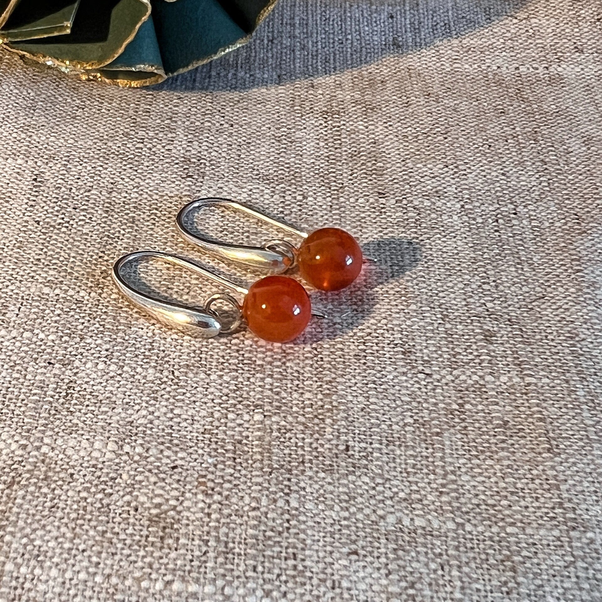De gladde, ronde carneool is bevestigd aan een zilveren haakje, waardoor de oorbellen licht en comfortabel dragen. Hun ingetogen vorm laat de steen voor zichzelf spreken: stijlvol, krachtig en elegant.