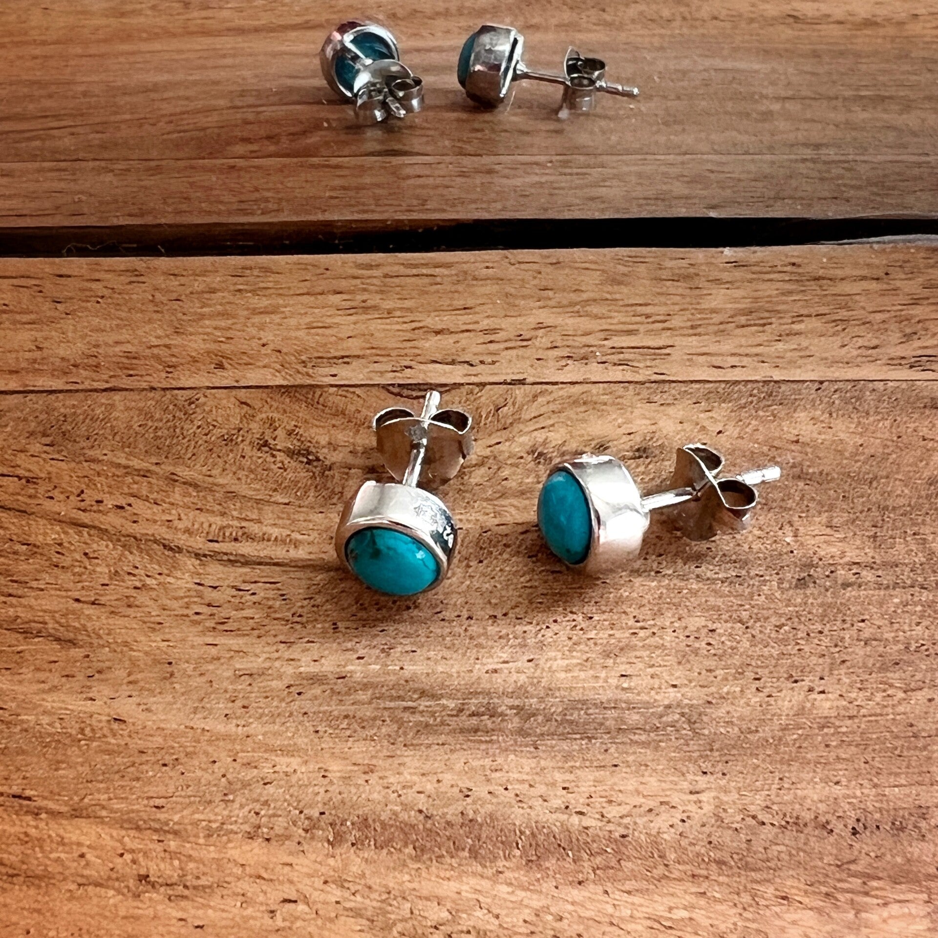 Zilveren oorknopjes met turkoois - 6 mm cabochon