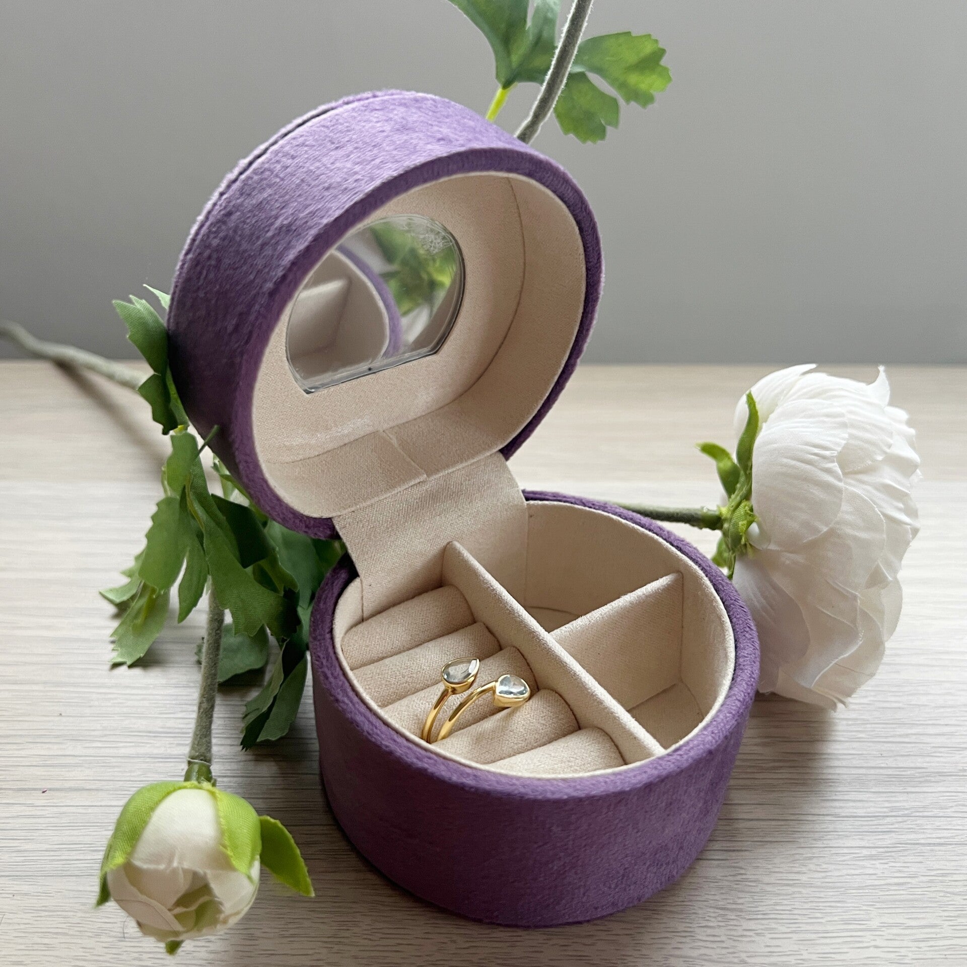 Met ringrol, vakjes en spiegeltje — sieraden blijven veilig en georganiseerd.