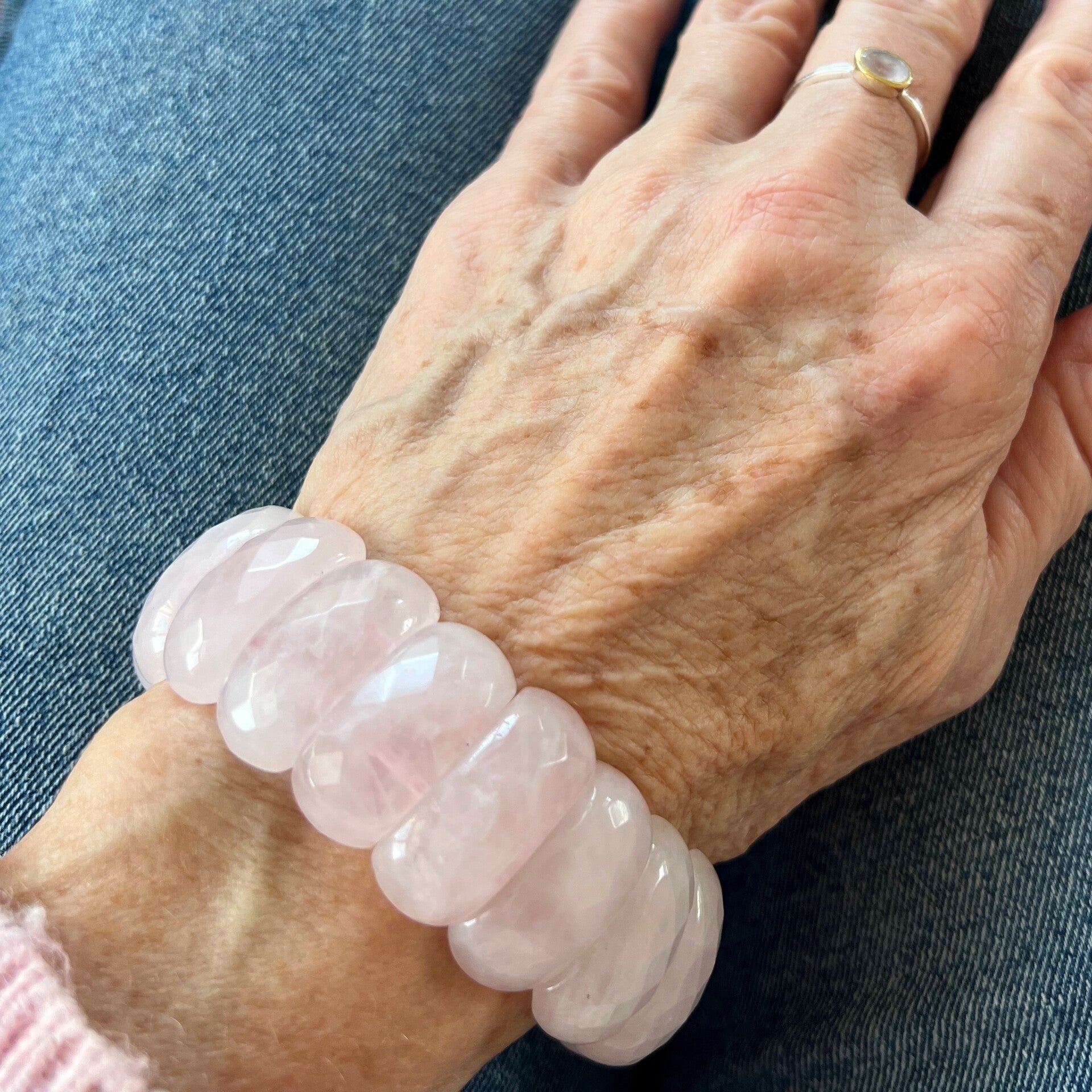 Rozenkwarts armband in zachte blush-roze tint.